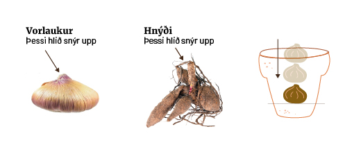 - Setjið laukinn/ hnýðið í rúmgóðan pott með pottamold