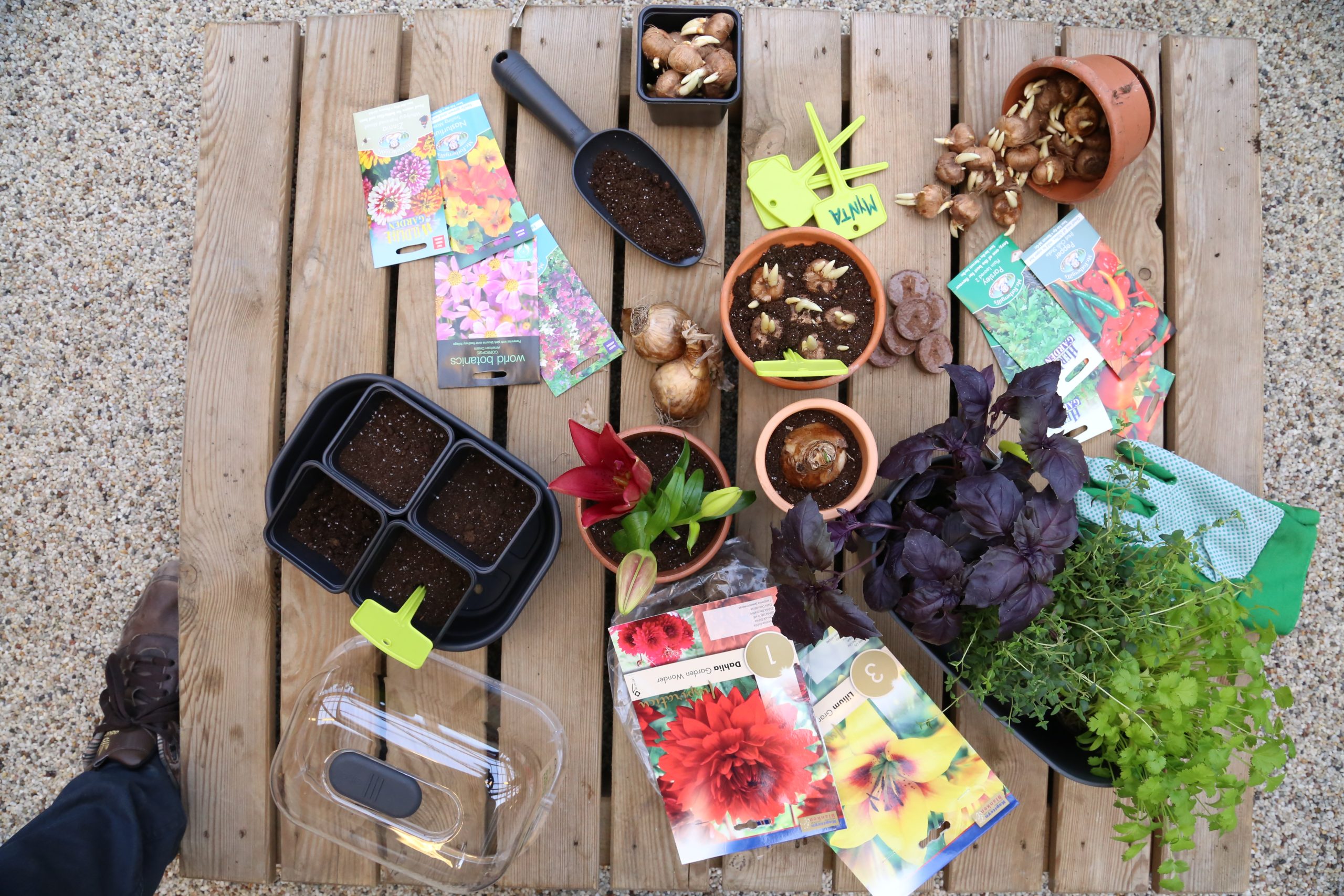 Þegar sáningu er lokið þarf að úða vel yfir og setja merkipinna með plöntuheitinu og dagsetningu sáningar í bakkann. Látið síðan dagblað eða plastskerm yfir til að halda jöfnum hita.