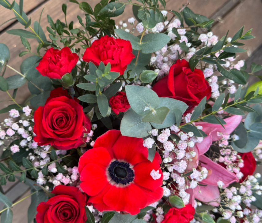 Hafa ber í huga að afskorin blóm eru árstíðabundin og hver skreyting einstakt handverk. Það má gera ráð fyrir að ekki nákvæmlega sömu tegundir af blómum séu til í verslun okkar eins og er á myndunum, en við reynum að fara eins nálægt fyrirmyndinni og við getum hverju sinni.