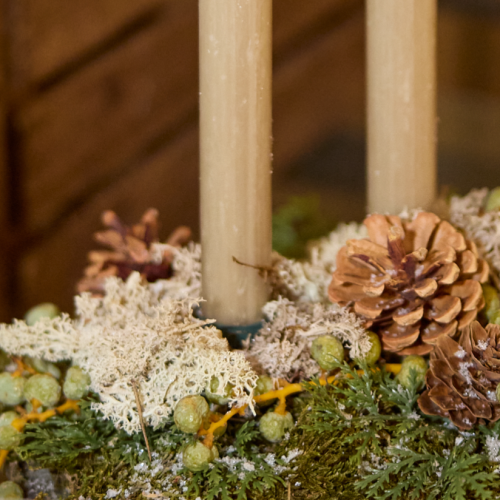 Valkostir This product has multiple variants. The options may be chosen on the product page2 stærðirKrans með snjó og könglum