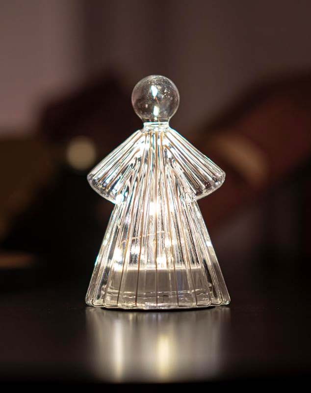 Engill úr glæru gleri frá Sirius, 14 cm hár og gengur fyrir batteríum.