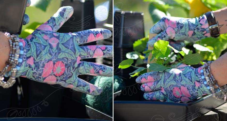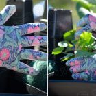 Frábærir hanskar úr teygjanlegu efni með gúmmí gripi. Retro stíll hannaður af Gunnel Ginsburg.