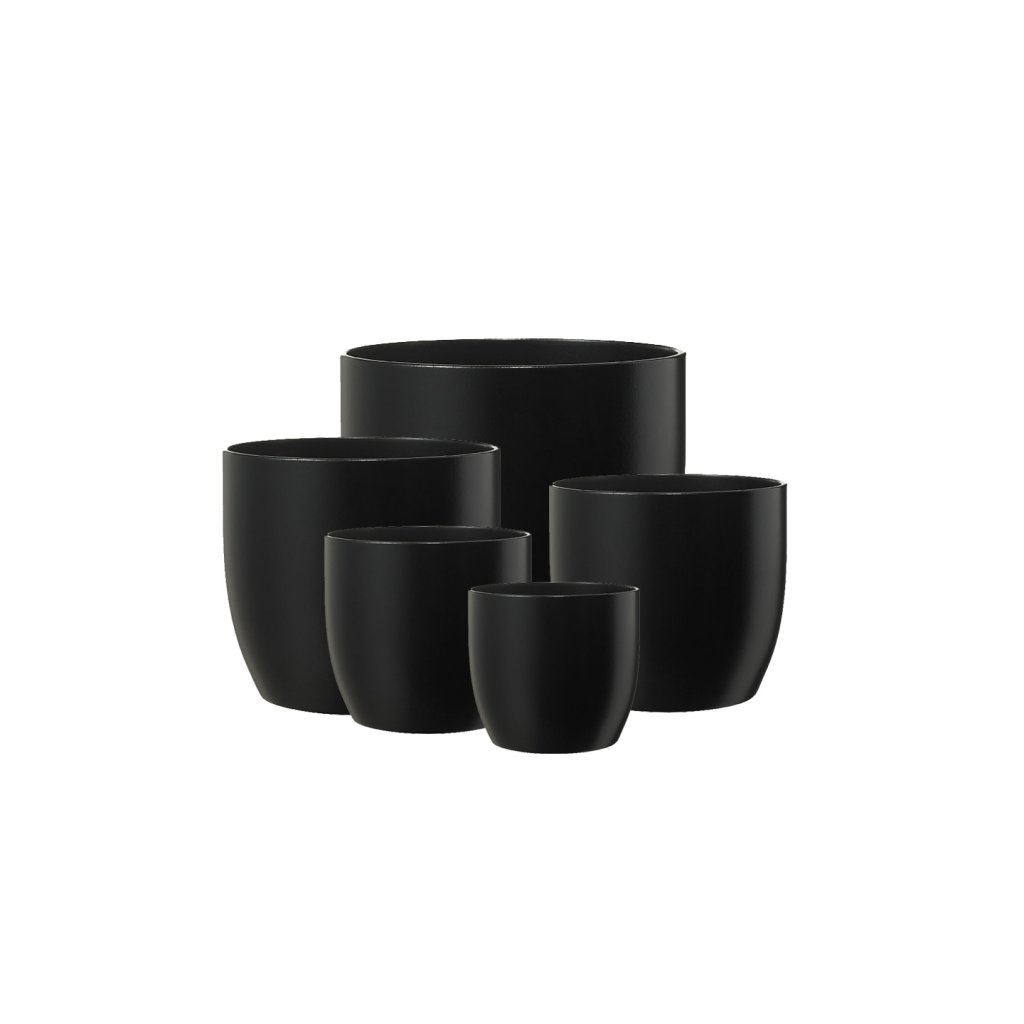 Basel svartir mattir keramikpottur frá SK, fáanlegir í nokkrum stærðum.