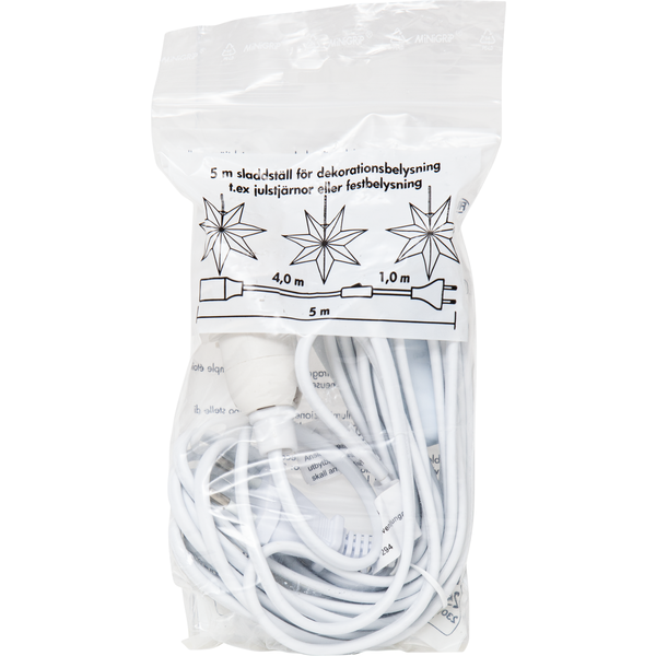Framlenging með perustæði á 5m hvítri snúru með takka til að kveikja og slökkva.