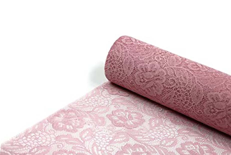 Bleikur blúndu renningur sem kemur fallega út á ljósum og dökkum dúk.