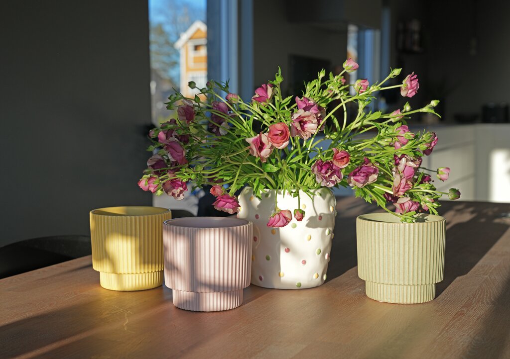 Ljósbleikur pottur með riffluðu mynstri