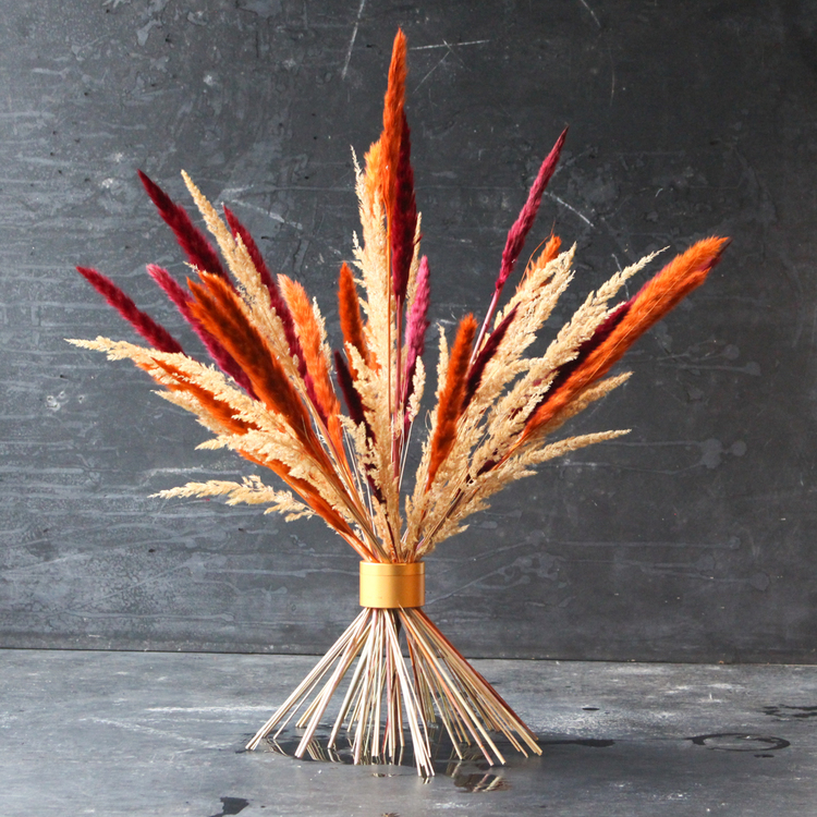 Hægt er að setja vöndinn í vasa, á fat eða stilla stráum upp á borð.