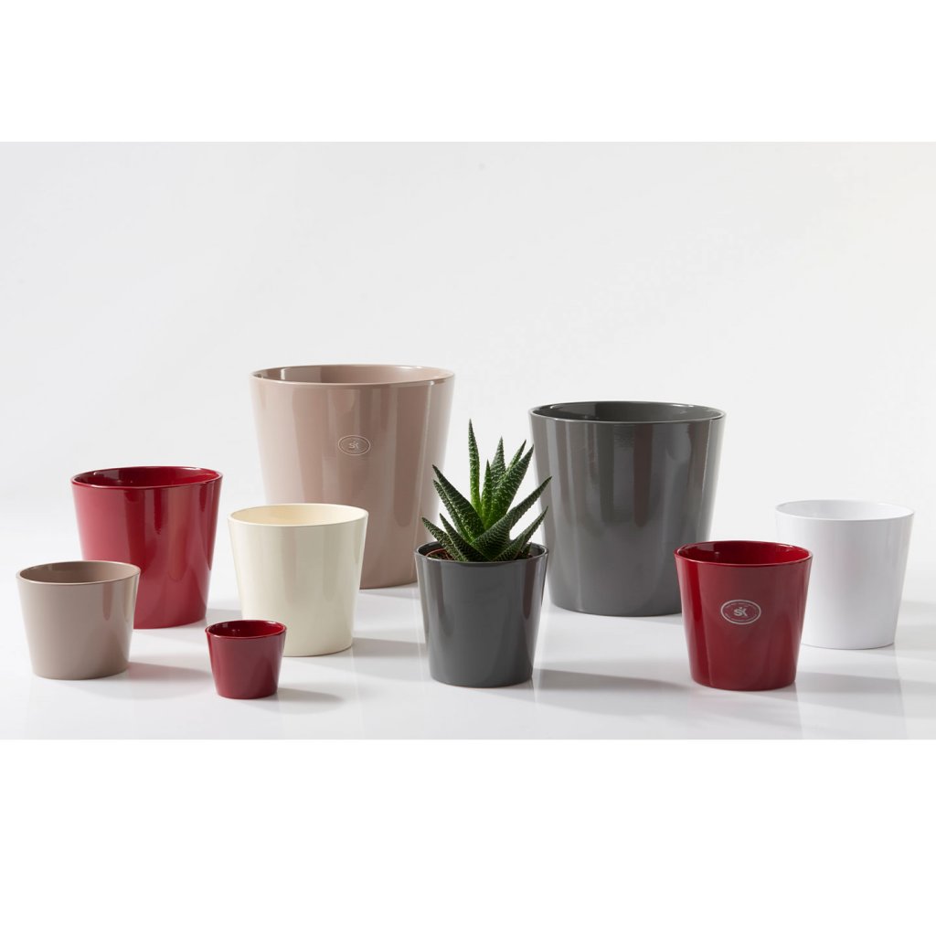 Dökkrauðir kermamikpottar með glansandi áferð frá SK.