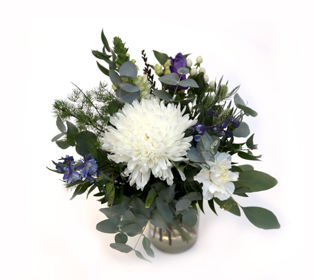Hafa ber í huga að afskorin blóm eru árstíðabundin og hver skreyting einstakt handverk.