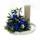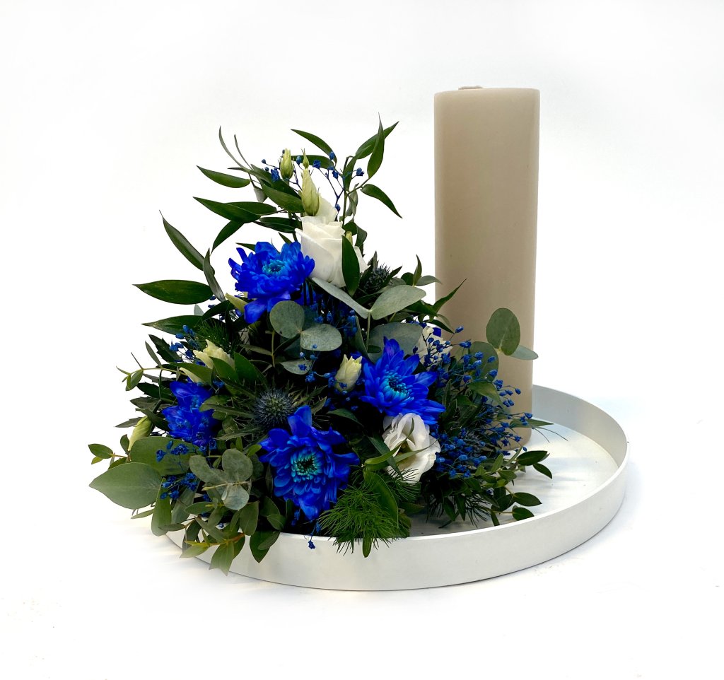 Meðfylgjandi myndir sýna hvernig skreytingin kemur út með kerti og á bakka. Kertið og bakkinn fylgja ekki með.