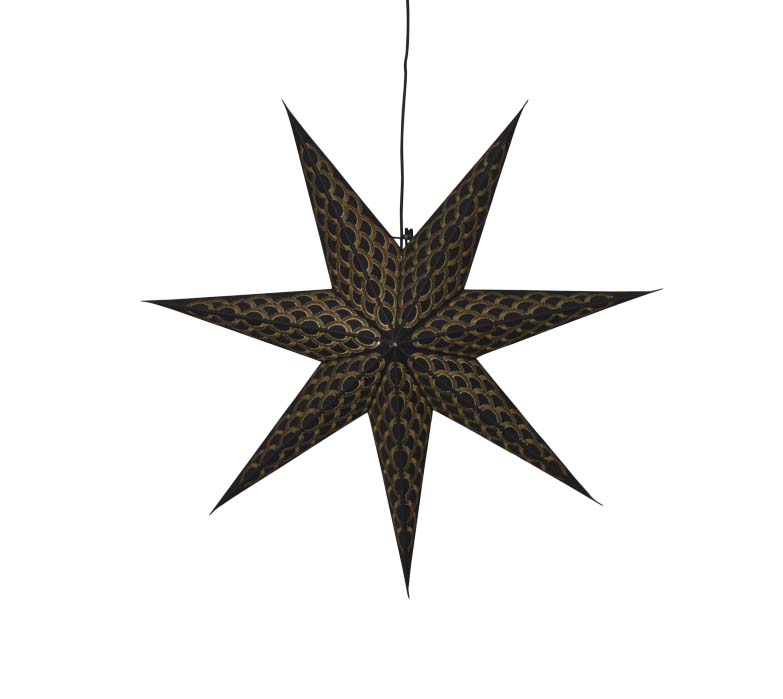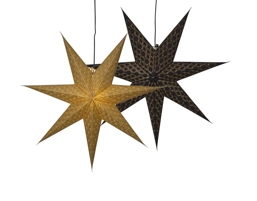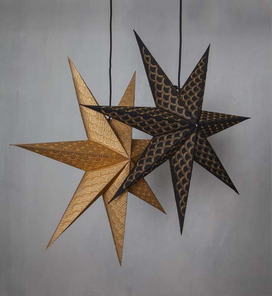Mjög fallegar pappastjörnur fáanlegar í tveimur litum, svört og gyllt