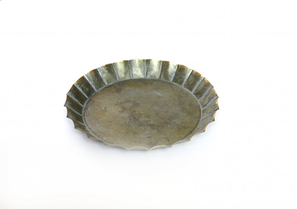 Bronslitaður bakki með rifluðum köntum.