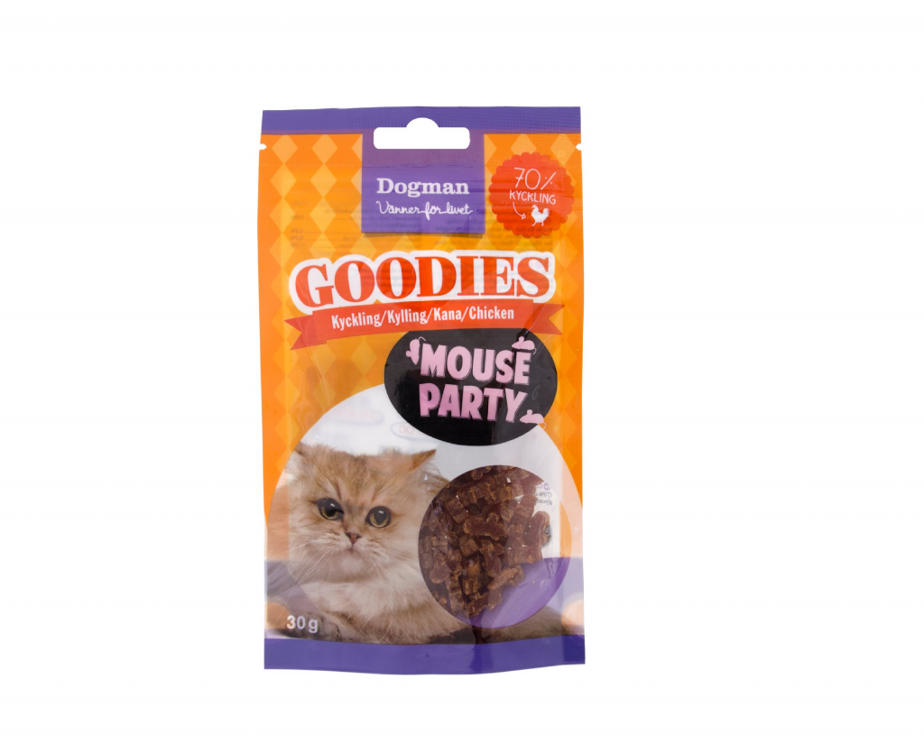 Litlar mýs úr kjúklingakjöti, 70% kjúklingur. Snoturt góðgæti!