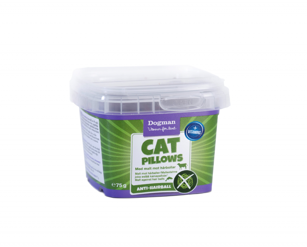 Kornpúðar með nautakjöti, laxi og malti sem vinnur gegn hárboltum. Vítamínbætt góðgæti!