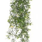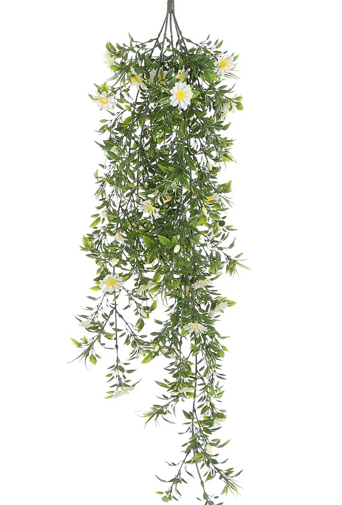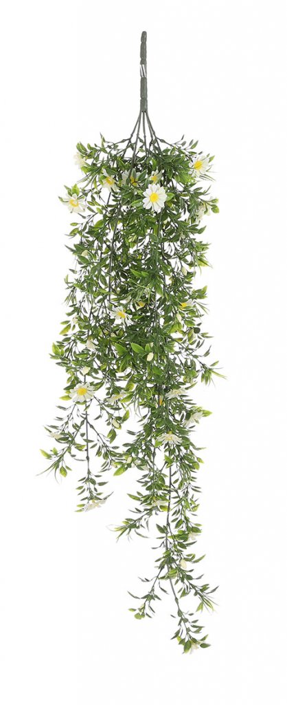 Fallegur hengivöndur með hvítum og gulum blómum.