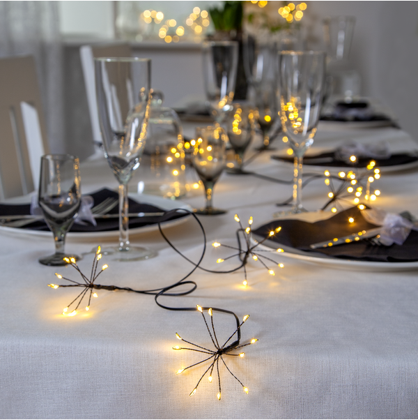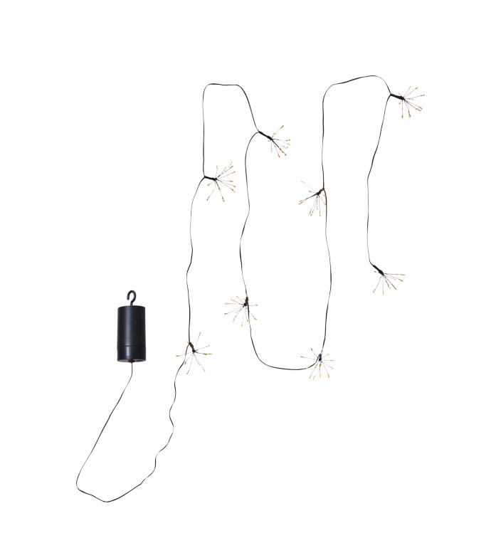 Falleg ljósasería með 96 LED ljósum sem mynda 8 blóm á svartri snúru, ljósin eru hvít (warm white). Má nota utandyra á skjólgóðum stað. Tímastillir sem gefur möguleika á að hafa kveikt í 6 klst og slökkt í 18 klst.