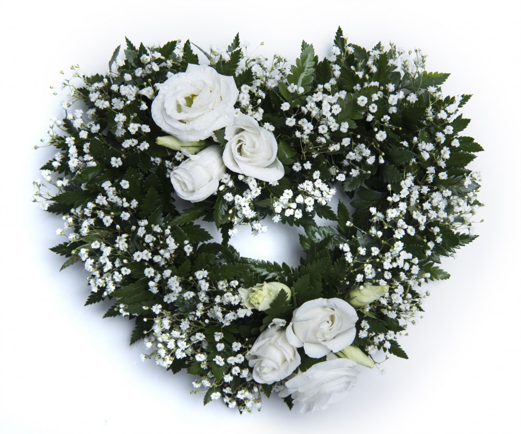 Yndislegt hjarta með brúðarslöri, silkivendi og blöndu af grænu.