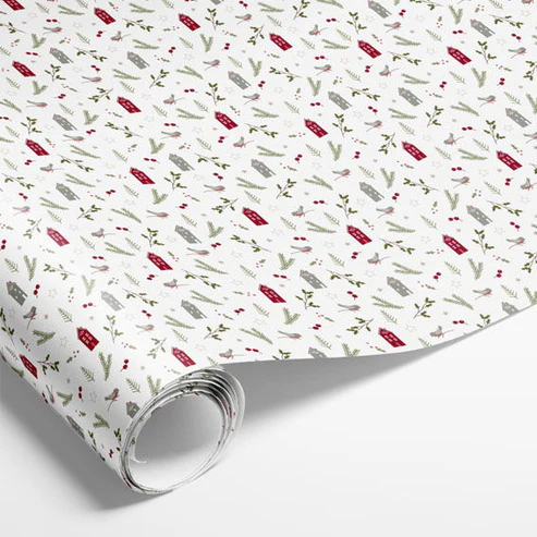 Gjafapappír með húsum og greinum – hvítur