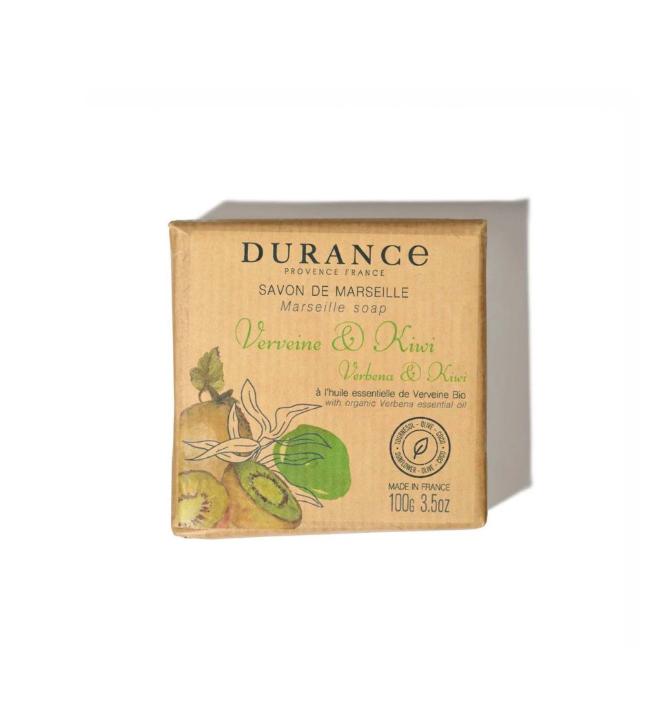 Mjúkt og ilmandi sápustykki frá Durance með verbena og kiwi ilm.