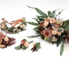 Heillandi vöndur sem samanstendur af rósum, silkivendi, achillea, krusa, brúðarkollu, nelliku, locodendrum og eucalyptus.