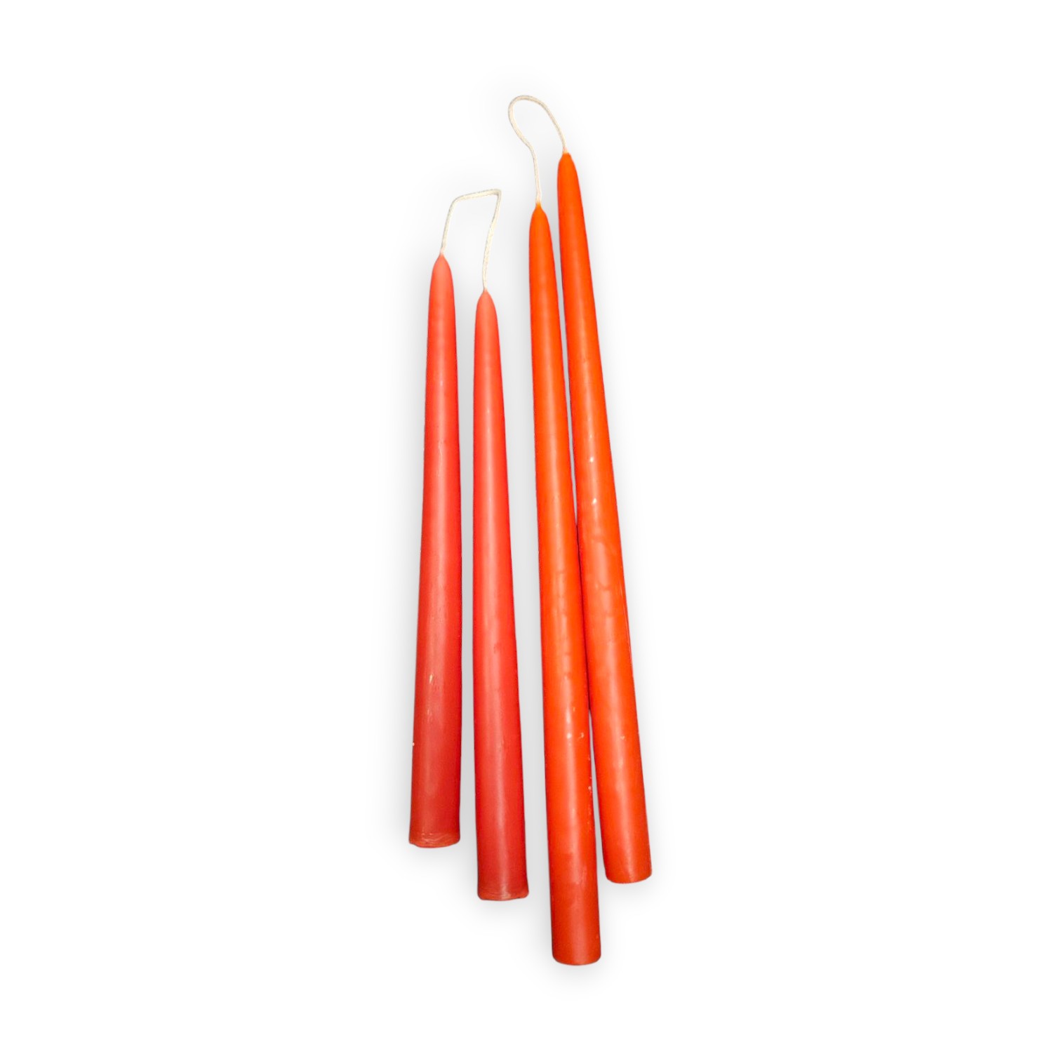 Heimaeyjarkerti í rauðu. Fást í tveimur stærðum. Koma fjögur saman í pakka.