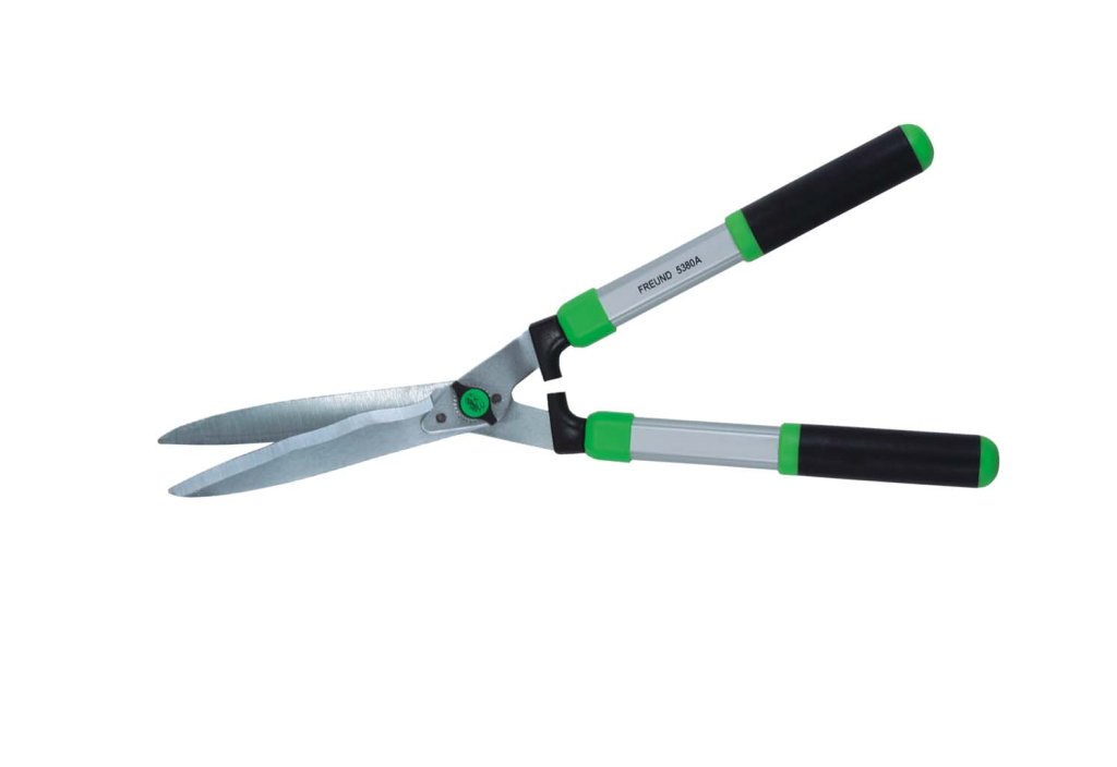Léttar hekkklippur með bylgjublöðum, höggdeyfir, góð handföng.