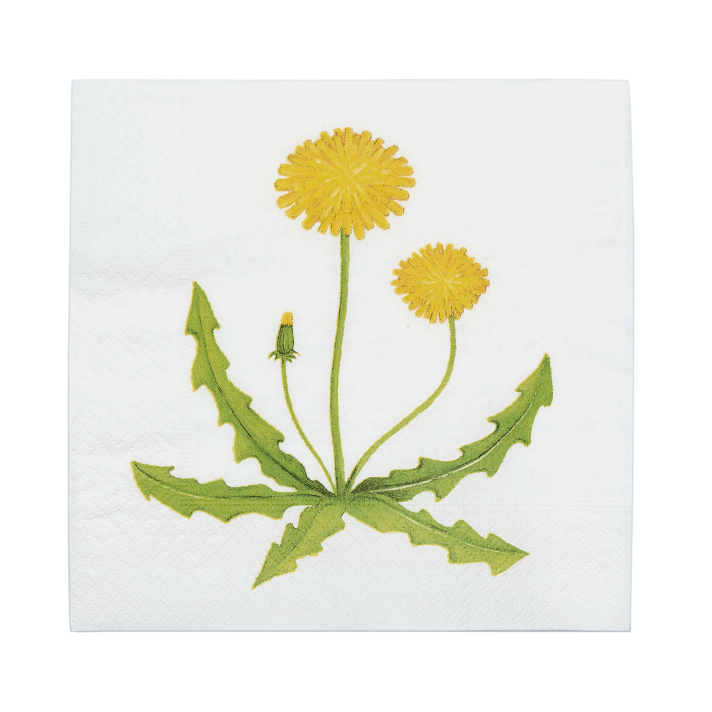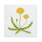 Sumarlegar servíettur með mynd af gulum fífil. Mismunandi myndir á fram- og bakhlið.