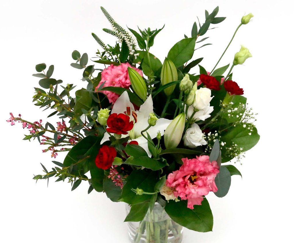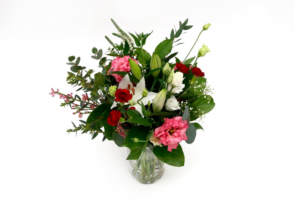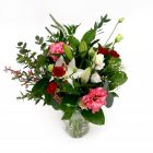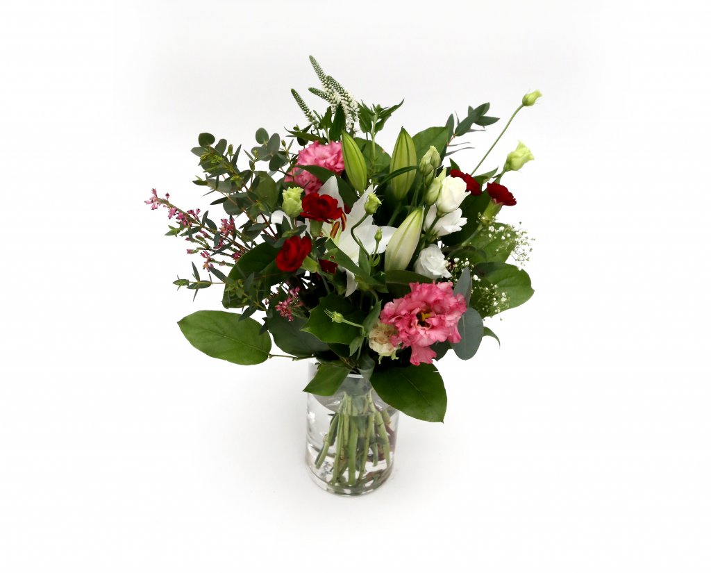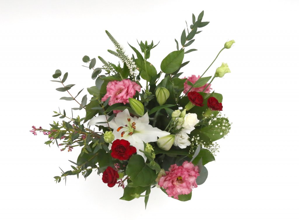 Hengill er líflegur og fallegur vöndur með silkivendi, nellikum, orientallilju, brúðarslöri, veronicu, staticu og blöndu af grænu.