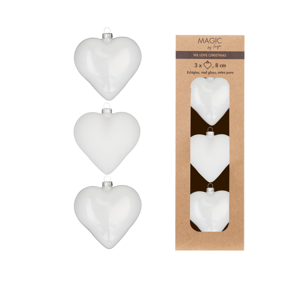Hjörtu jólaskraut 3 stk, 8 cm – hvít