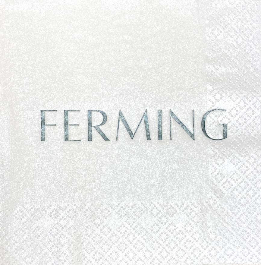 Hvítar servíettur frá Home Fashion. Servíetturnar eru áletraðar af Letterpress með textanum „FERMING“ í hástöfum í grænu letri.