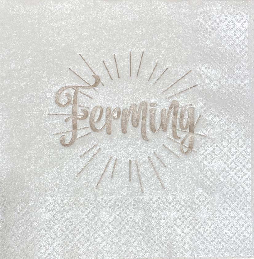 Hvítar servíettur frá Home Fashion. Servíetturnar eru áletraðar af Letterpress með sólargeislum og skrautskrift með rose gold letri.