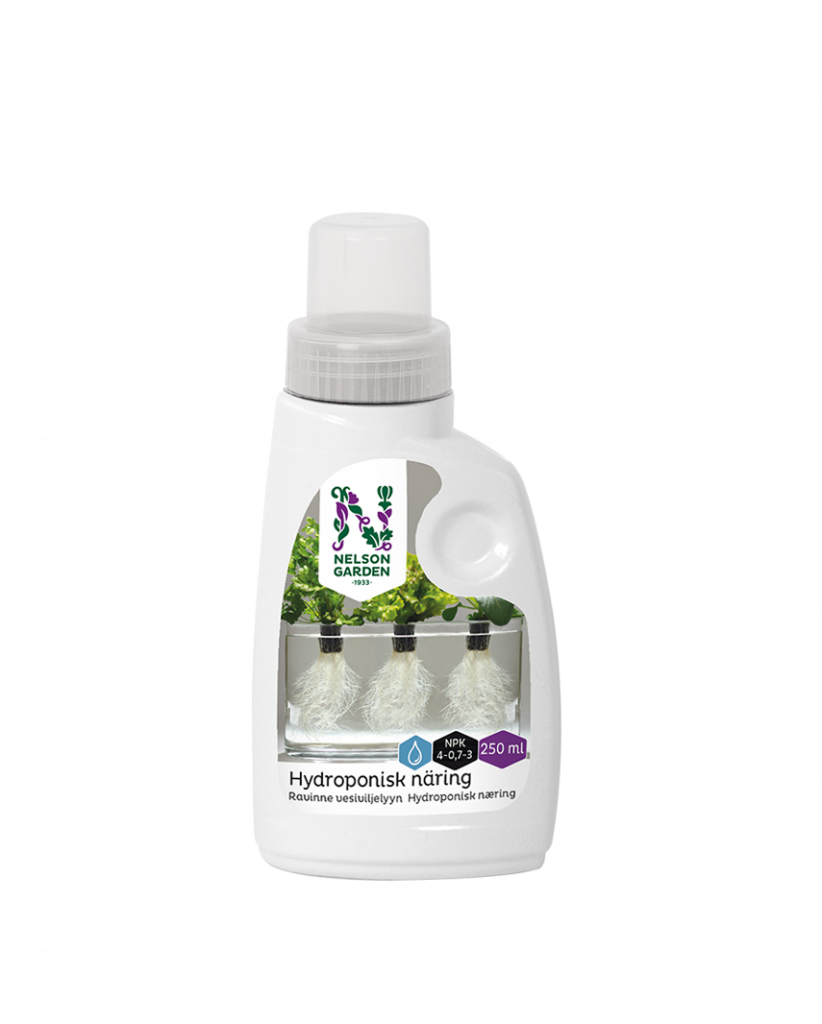 Hydroponic næring frá Nelson Garden er fyrir vatnsræktun. Plöntunæring sem er sérstaklega gerð fyrir vatnsræktun, þ.e. ræktun í vatni . Þægileg flaska með mælikvarða í tappanum sem auðveldar skömmtun á næringunni.