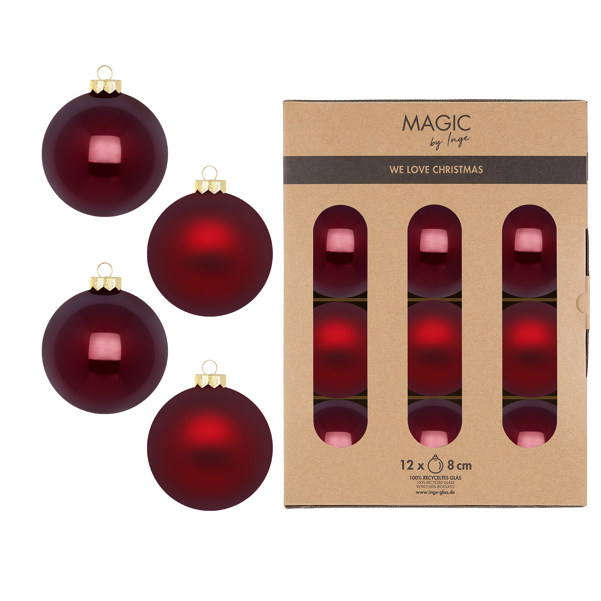 Jólakúlur 12 stk, 8 cm – dökkrauðar