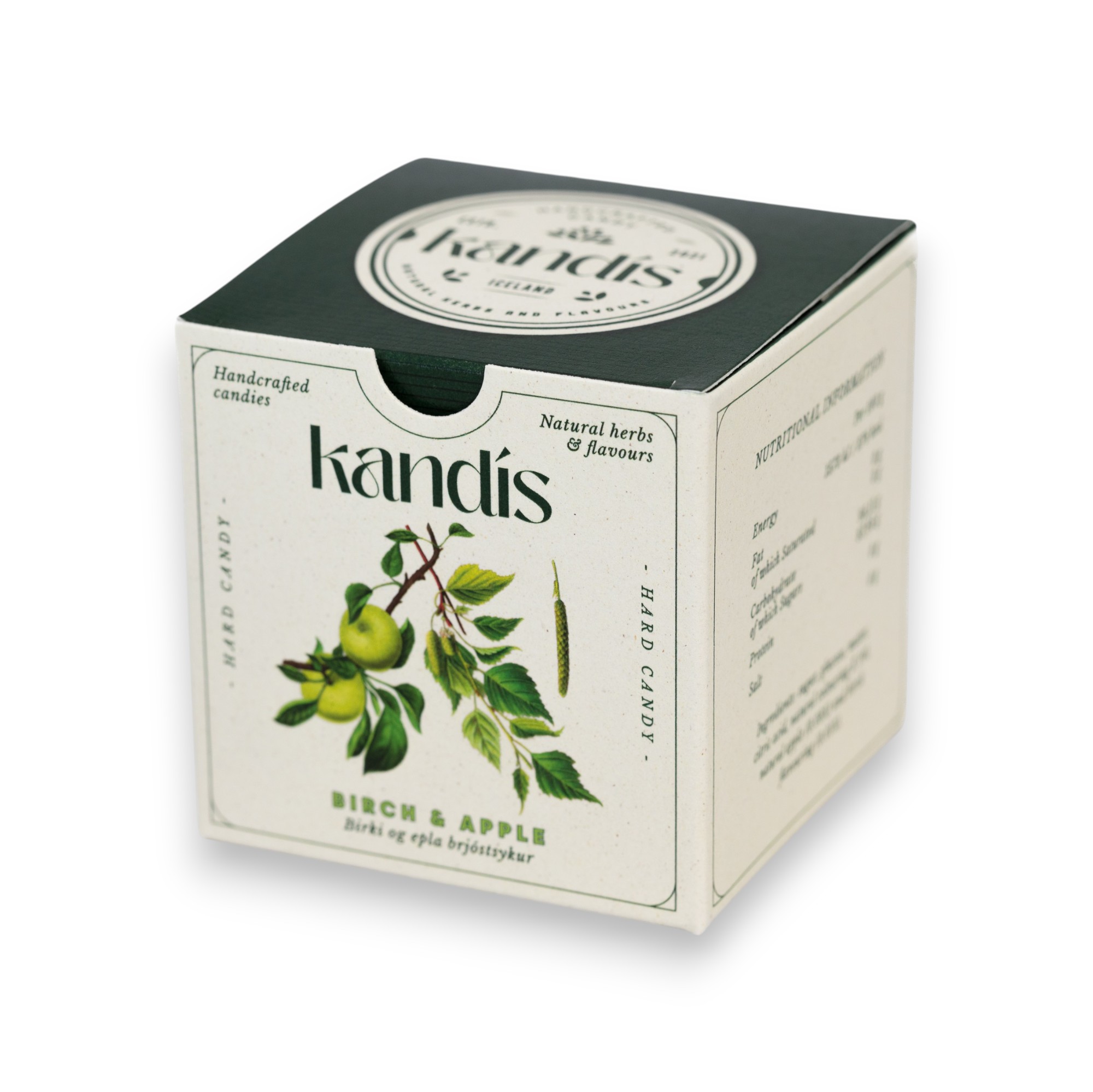 Kandís með birki og eplabragði. Kemur í fallegum kassa og er tilvalinn í gjöf.
