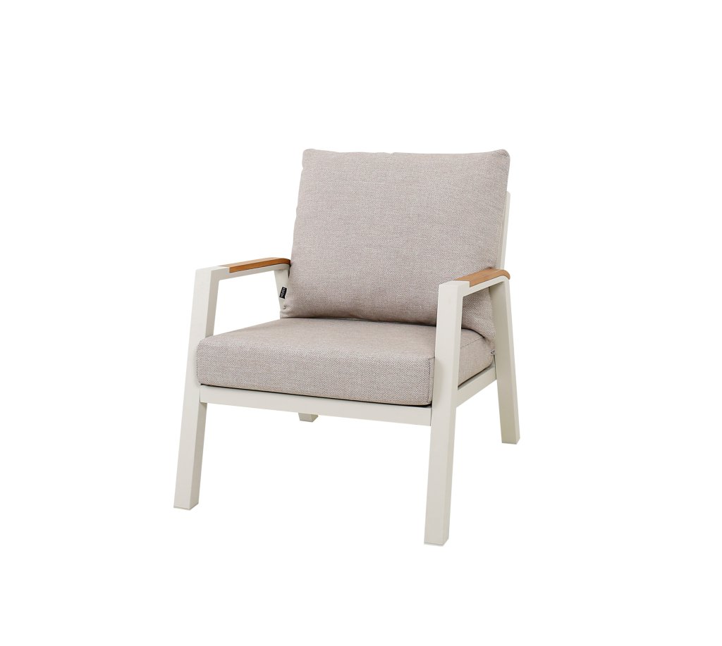 Garðhúsgögnin eru sterkbyggð, gerð úr áli og henta vel norrænu veðurfari. Gott er að geyma húsgögnin í skjóli eða undir yfirbyggingu þegar þau eru ekki í notkun. Sessurnar eru úr efninu Olefin sem hentar vel utanhúss. Efnið er slitsterkt, blettaþolið og vatnsfráhrindandi. Upplitun í sól er óveruleg en efnið þolir 1000 sólarstundir. Mælt er með að taka púðana inn þegar rignir. Þvottaleiðbeiningar eru innan í púðunum.