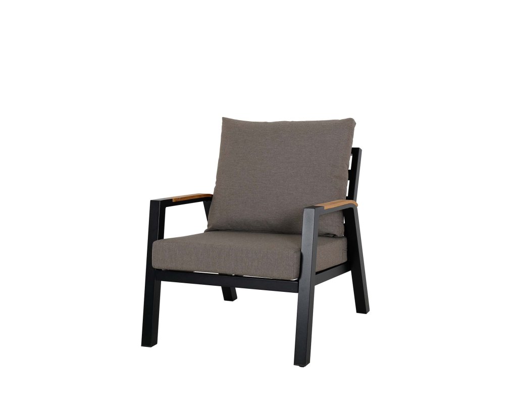 Garðhúsgögnin eru sterkbyggð, gerð úr áli og henta vel norrænu veðurfari. Gott er að geyma húsgögnin í skjóli eða undir yfirbyggingu þegar þau eru ekki í notkun. Sessurnar eru úr efninu Olefin sem hentar vel utanhúss. Efnið er slitsterkt, blettaþolið og vatnsfráhrindandi. Upplitun í sól er óveruleg en efnið þolir 1000 sólarstundir. Mælt er með að taka púðana inn þegar rignir. Þvottaleiðbeiningar eru innan í púðunum.