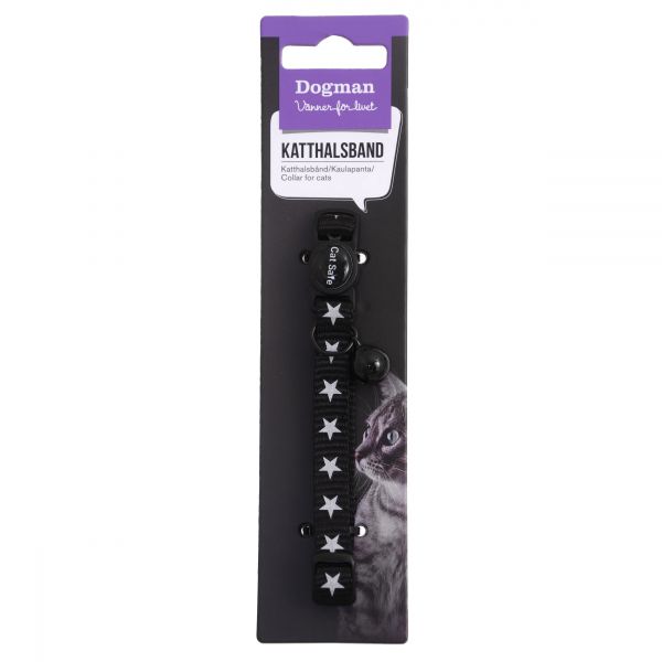 Kattaól með endurskins stjörnum og bjöllu. Ólin er með Cate öryggislás sem opnast ef ólin festist í einhverju.