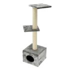 Klórustaur með húsi neðst sem kisa getur hvílt sig í. Langur staur úr sisal efni sem gott er a klóra í og tveir pallar með mjúku efni líkt og er í húsinu.