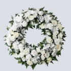Þéttur og fallegur heilskreyttur krans í hvítu.