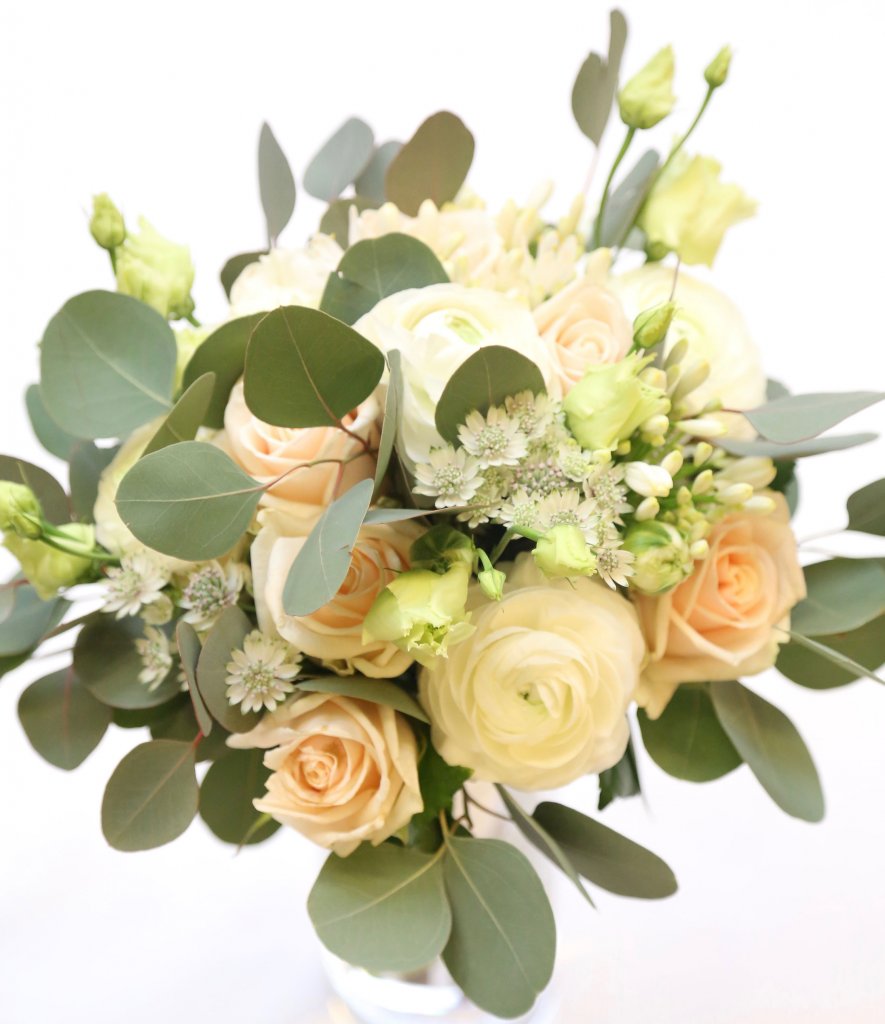 Lagleg er mildur og hugljúfur vöndur sem samanstendur af rósum, ranaculus, silkivendi, astrantiu og eucalyptus.