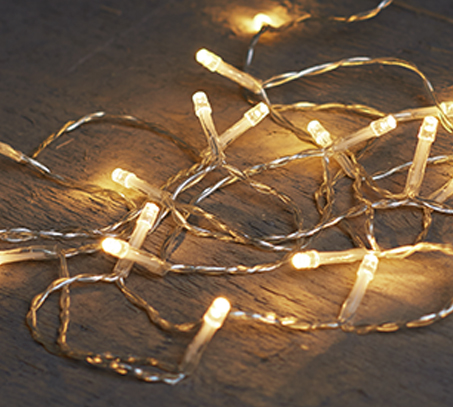 Led lights hvít, glær snúra – batt