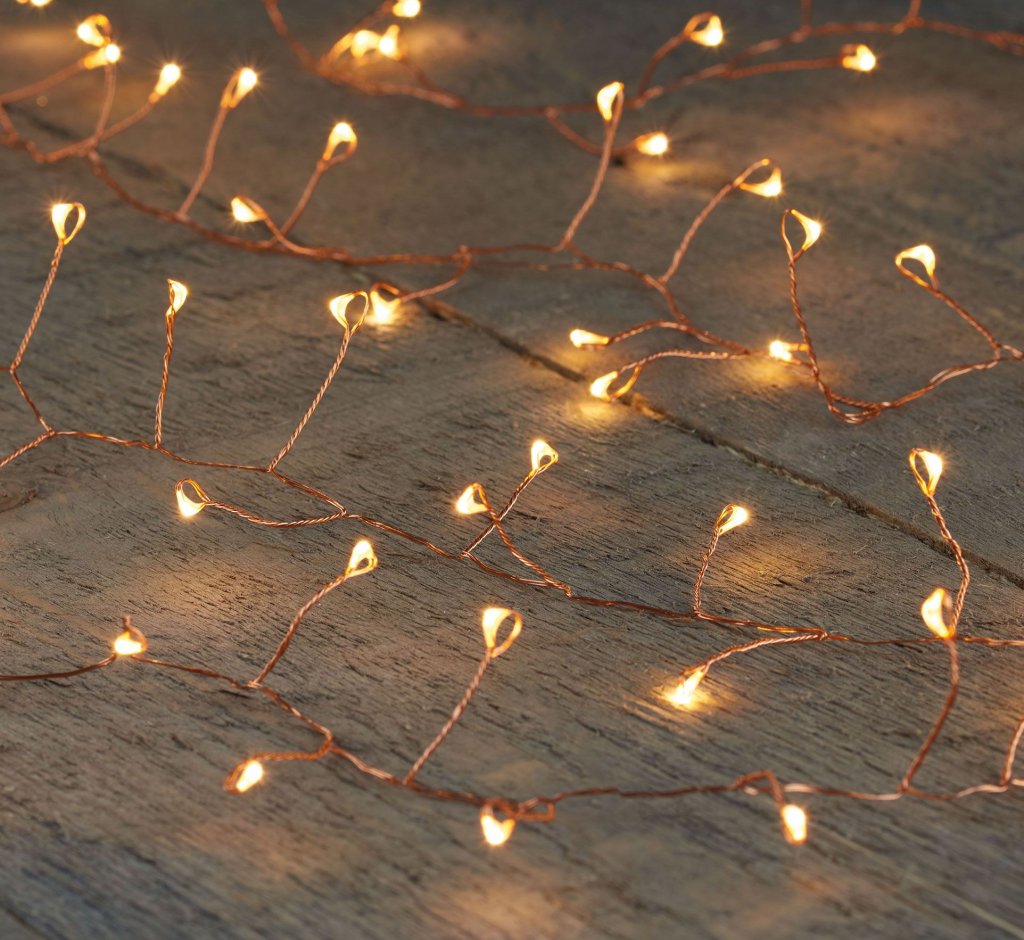 Vírasería með 100 eða 200 hlýjum led ljósum (classic warm) á kopar vír.