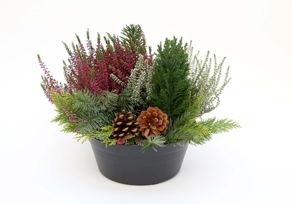 Hafa ber í huga að plöntur eru árstíðabundin og hver skreyting einstakt handverk. Það má gera ráð fyrir að ekki nákvæmlega sama tengund af undirlagi og plöntum sé til eins og er á myndinni, en treysta má að skreytingin verður falleg.
