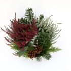 Hugguleg leiðisskreyting með Syprus, Callunum, greni og könglum.