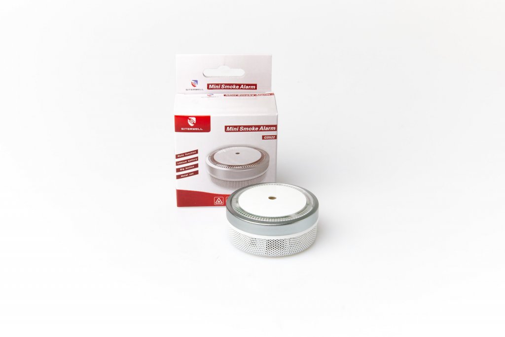 GS522 Mini reykskynjari með 10 ára ending, silfurlitaður og hvítur.