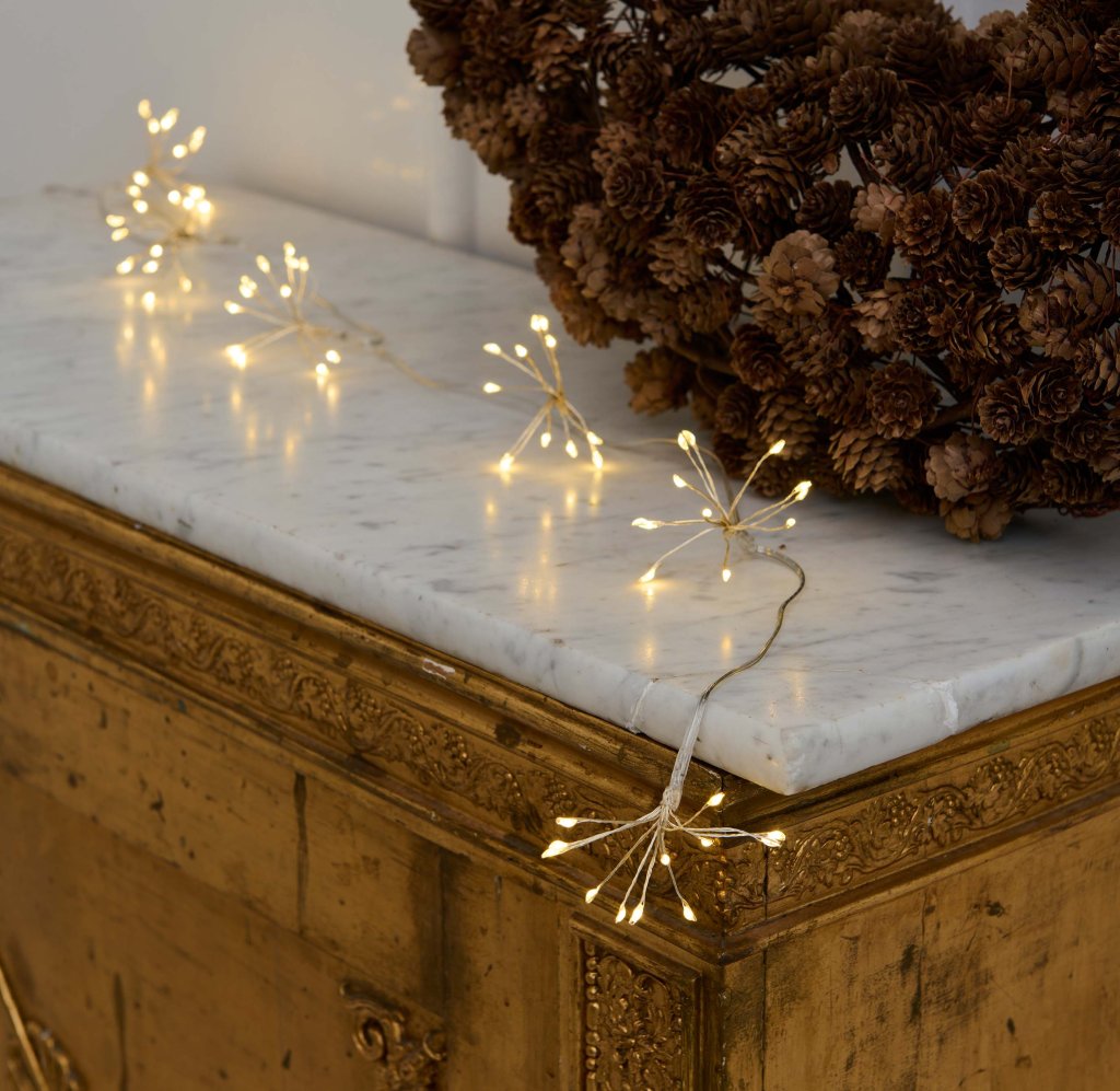 Falleg ljósasería með ljósasprotum á silfur vír. Hentar vel td. á matarborðið eða í skreytingar. Serían er með silfurlituðum vír og gengur fyrir rafmagni.