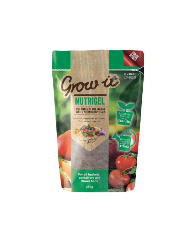 Vatnskristallar með áburði fyrir grænmeti sem breytist í gel þegar bleytt er uppí þeim. Gott að blanda saman við mold til að halda rakanum í moldinni.