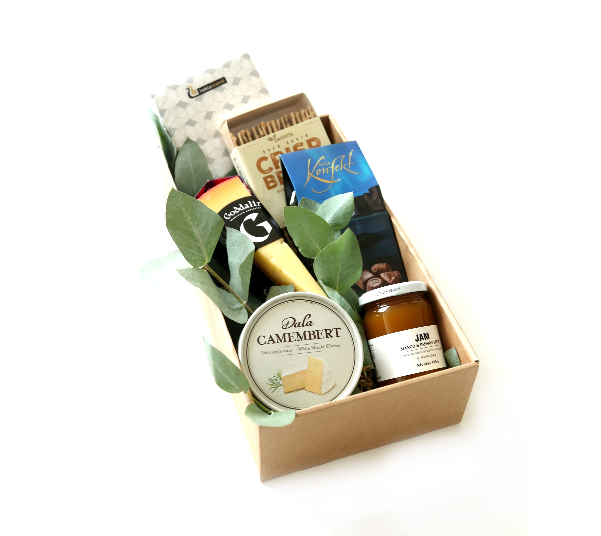Undirlag í gjafakörfum okkar getur verið breytilegt en er alltaf sambærilegt því sem sést á myndinni hér.