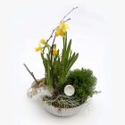 Hafa ber í huga að blóm og plöntur eru árstíðabundin og hver skreyting einstakt handverk. Potturinn gæti verið annars konar en yrði alltaf sambærilegt því sem sést á myndinni hér.