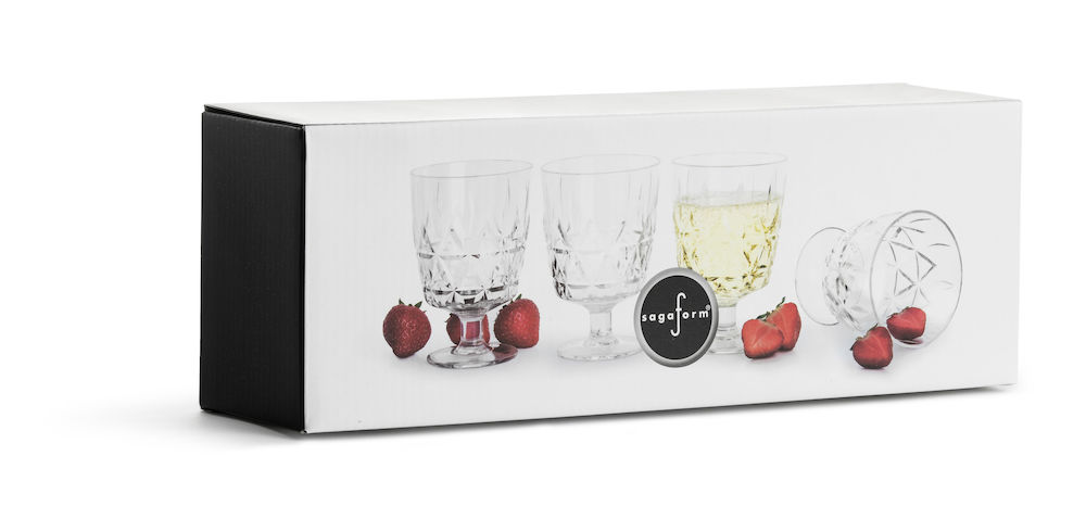 Fjölnota og falleg glös á fæti sem fegra og gleðja. Tilvalið inni sem úti, í húsbílinn, sumarhúsið, lautarferðina o.fl. Glösin eru úr akrýl plasti en útlitið er mjög líkt gleri.